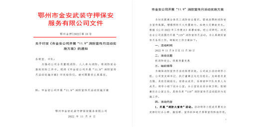 11月9日消防宣传月活动以来,市金安武装守押公司围绕“抓消防安全,保高质量发展”活动主题,通过开展消防大宣传、消防全员学等五项措施,扎实推进活动开展,提升了员工消防安全意识,压实了消防安全责任。