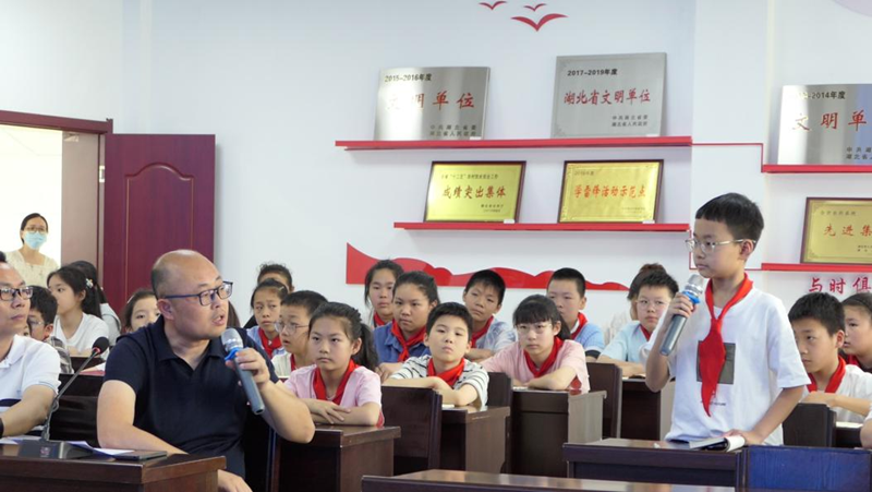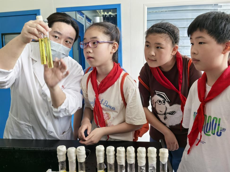 参观结束后,水务集团工程师为孩子们带来了一堂趣味横生的节水课。通过对比实验,同学们直观感受到水污染的危害。在知识互答环节,学生们就生活用水中的常见现象提出了自己的疑问。讲解老师对学生的发问一一耐心作答,并以“生活废水如何二次利用”等问题引发了学生们的思考与讨论。