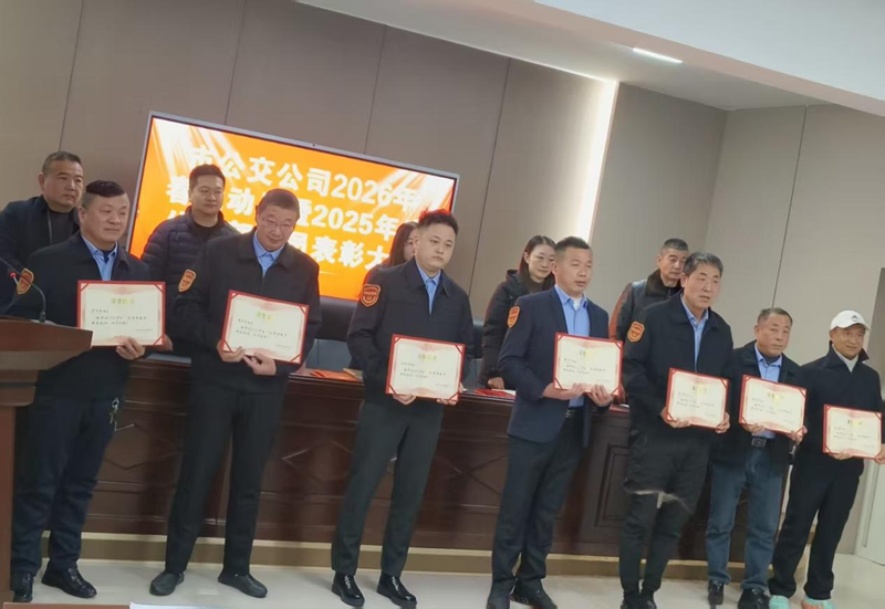 会上,公司副总经理许俊宣读《2026年春运工作方案》,明确春运整体工作框架;工会主席肖敏宣读2025年度表彰决定,对获评“优秀驾驶员”“安全驾驶员”“规范服务驾驶员”的优秀从业者予以表彰,公司领导为获奖人员颁发荣誉证书并寄予勉励,希望其发挥示范引领作用。随后,3名优秀驾驶员代表登台发言,结合自身从业经历作出春运安全服务郑重承诺;安保科全面总结2025年安全生产工作,梳理经验短板为春运安全保障提供支撑,各分公司依次作春运工作表态,明确本单位落实举措。