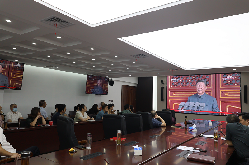 9月3日上午,纪念中国人民抗日战争暨世界反法西斯战争胜利80周年大会在北京天安门广场隆重举行。中共中央总书记、国家主席、中央军委主席习近平发表重要讲话。鄂州市国资国企广大党员干部职工满怀激情,心潮澎湃,通过电视、网络等多种形式集中收听收看大会直播盛况,认真聆听习近平总书记重要讲话,共同见证振奋人心的历史时刻,共同回顾那段浴血奋战的峥嵘岁月,接受了一次深刻的爱国主义教育。